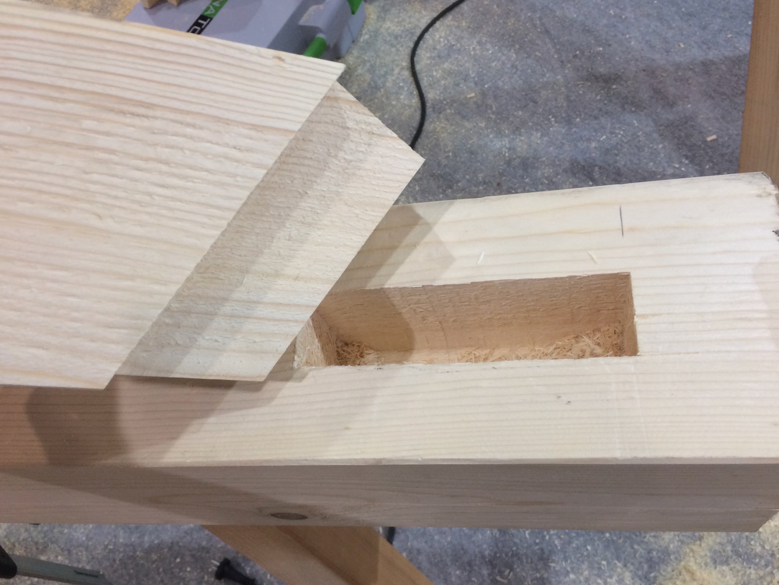 La espigadora también puede utilizarse para ranurar los extremos de las vigas. La anchura de la ranura varía en función de la anchura de la cadena.